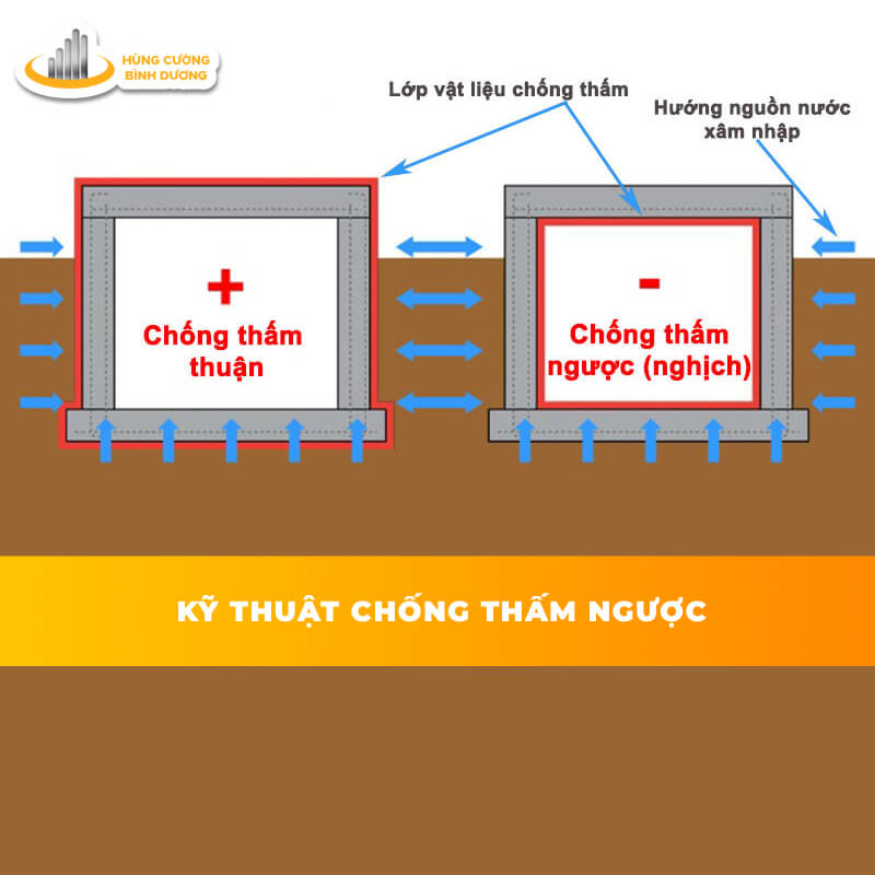 Tuy nhiên, với công trình đã hoàn thiện hoặc bị che khuất bởi các công trình liền kề, việc chống thấm tầng hầm trở nên khó khả thi. Lúc này, giải pháp chống thấm ngược tầng hầm sẽ là lựa chọn tối ưu cho các công trình xây dựng. Đây là phương pháp xử lý từ phía bên trong – mặt đối diện với nguồn nước.